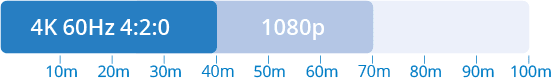 • Supports 4K UHD video up to 40m @ 4K (3840 x 2160 @30Hz 4:4:4, 4096 x 2160 @24Hz 4:4:4, and 4K @60Hz 4:2:0)