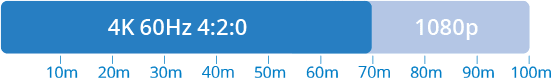 • Supports 4K UHD video up to 70m (3840 x 2160 @30Hz 4:4:4, 4096 x 2160 @24Hz 4:4:4, and 4K @60Hz 4:2:0)
